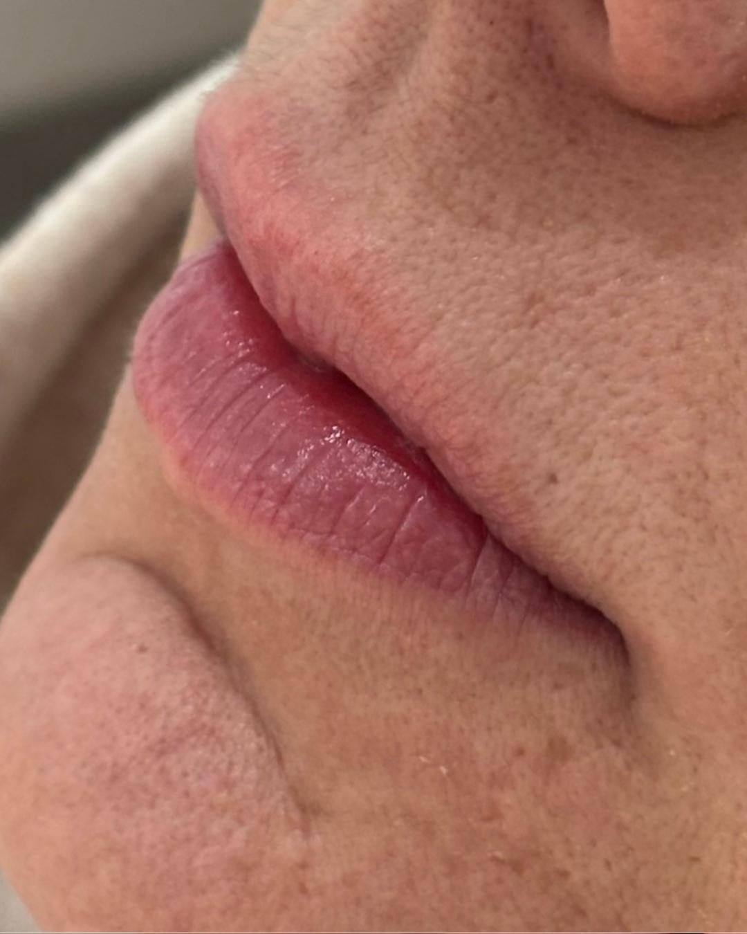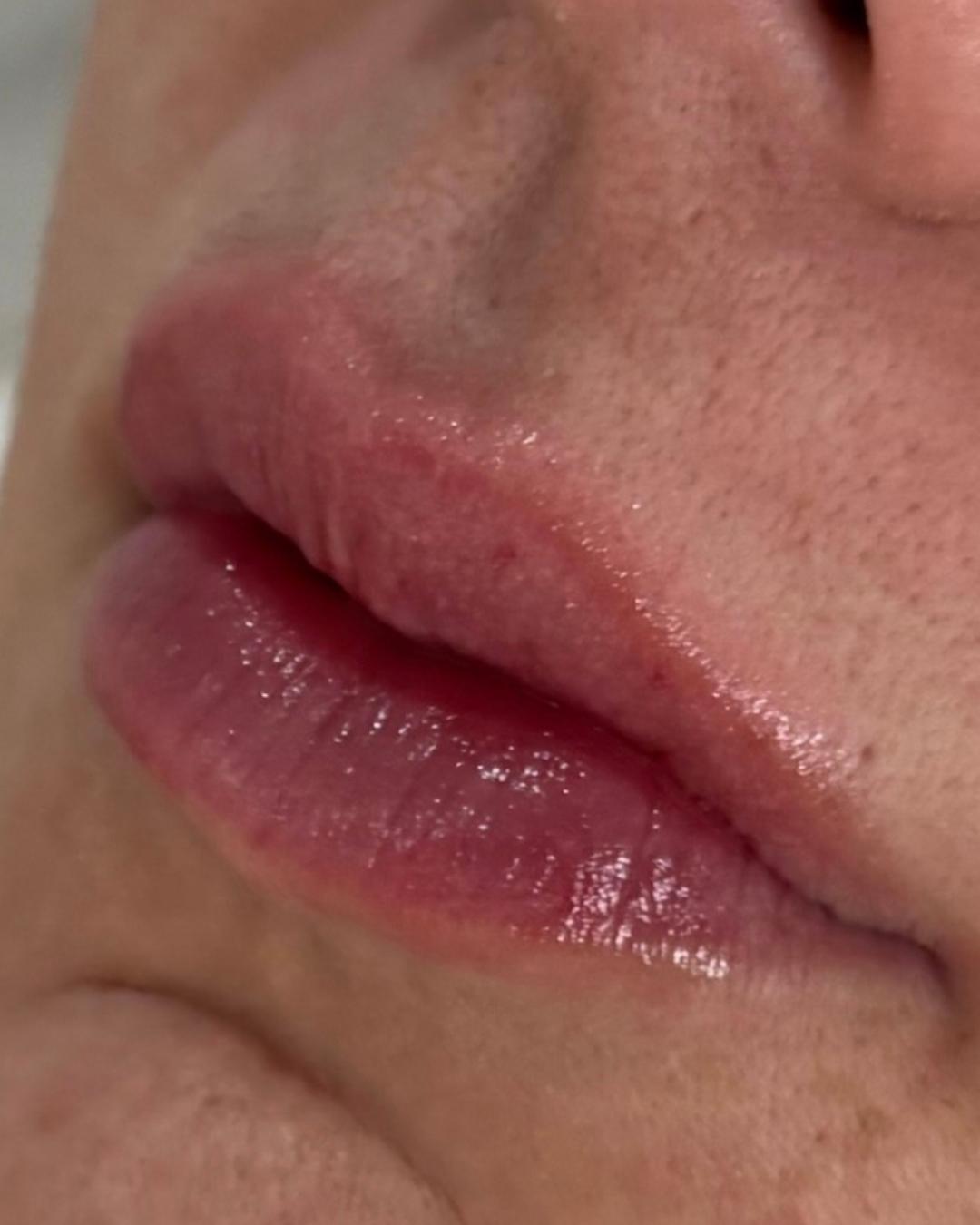 Dermal filler treatment to improve lip volume and definition while maintaining appropriate balance and proportion.