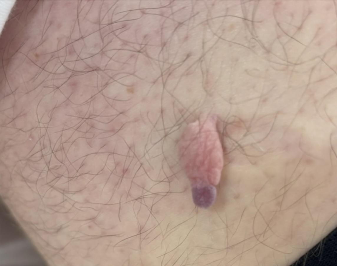 Assessment-led removal of a skin tag using clinically appropriate treatment, with immediate post-treatment appearance shown. Some redness may occur and a small scab can form as the skin heals.